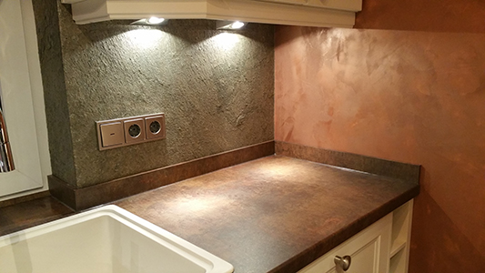 Durch regelmäßige Weiterbildung und Schulungen, immer auf der Suche nach der „besonderen Oberfläche“, entwickelte sich die Malerwerkstatt Offergeld in den letzten Jahren mehr und mehr zum Wohnraumgestalter, oder besser gesagt zum Gestaltungsmaler. Diese Leidenschaft und Begeisterung, besondere und edle Wände zu gestalten bereitet dem gesamten, kreativen Team und seinem Chef nach wie vor große Freude.